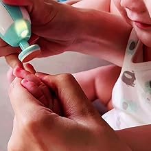Whisper-quiet motor + LED light lets you trim nails without waking your baby.
