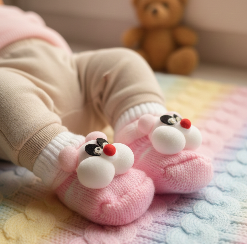 Introducing the Premium 3D Bear Knitted Booties-the perfect bridge between a cozy sock and a protective shoe.