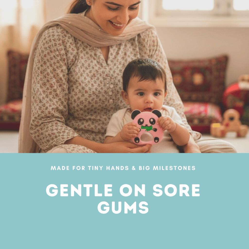 Instant Gum Soothing: Specifically designed to provide deep-tissue counter-pressure. The textured panda "belly" massages sore, swollen gums, offering immediate relief from the pain of erupting teeth.