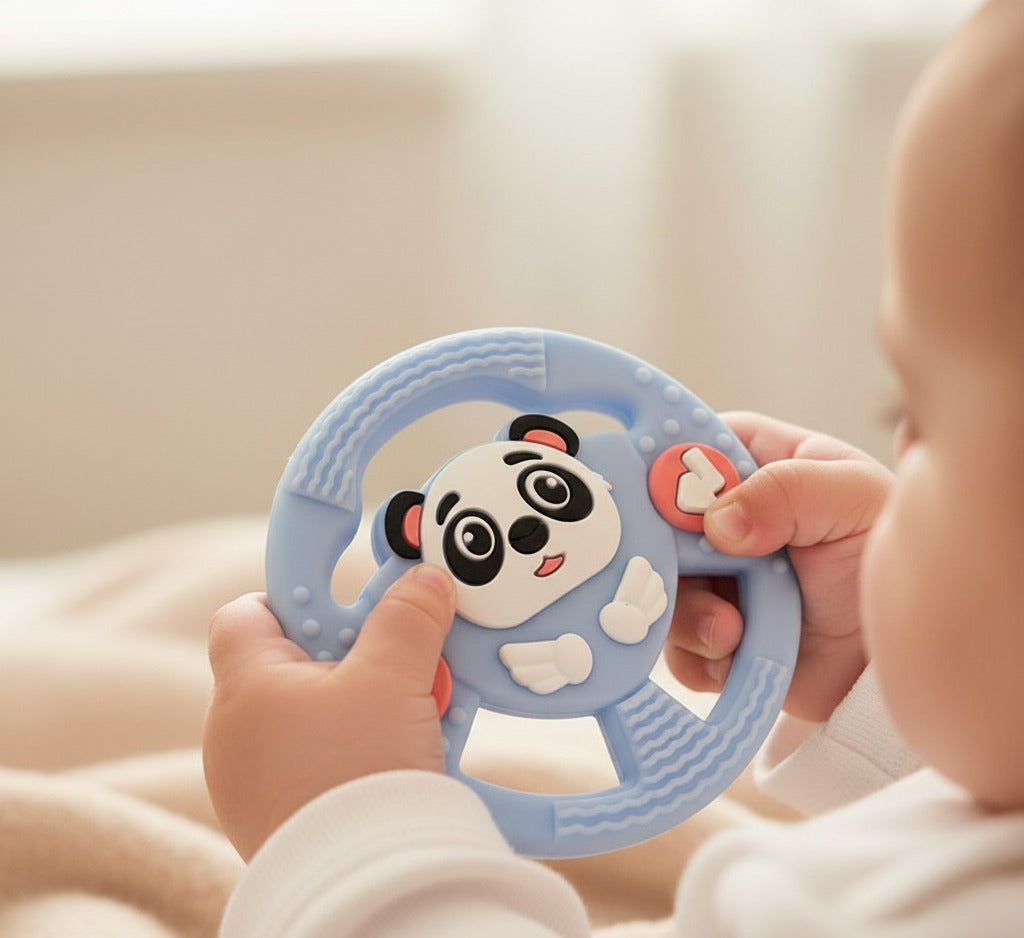 In Pakistan, we know that when your baby is teething, the whole house feels the stress. From restless nights to constant fussiness, seeing your little one in pain is heart-wrenching. Our Panda Steering Wheel Teether is the ultimate solution for busy parents. Designed with a textured "Panda Belly" that gently massages sore gums, it helps calm your baby naturally.