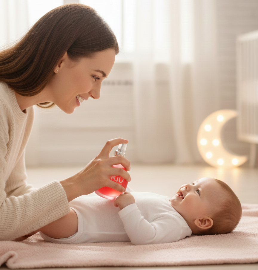 Yes! RIO is specifically formulated for the delicate skin of newborns and toddlers. It is water-based, hypoallergenic, and free from harsh chemicals like parabens and phthalates. However, for newborns, we always recommend a small patch test or spraying on clothing first.